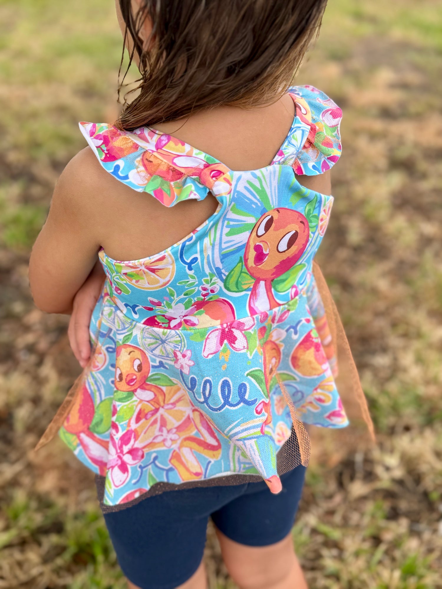 Candence is a ruffle sleeved peplum, dress, short or pants romper.