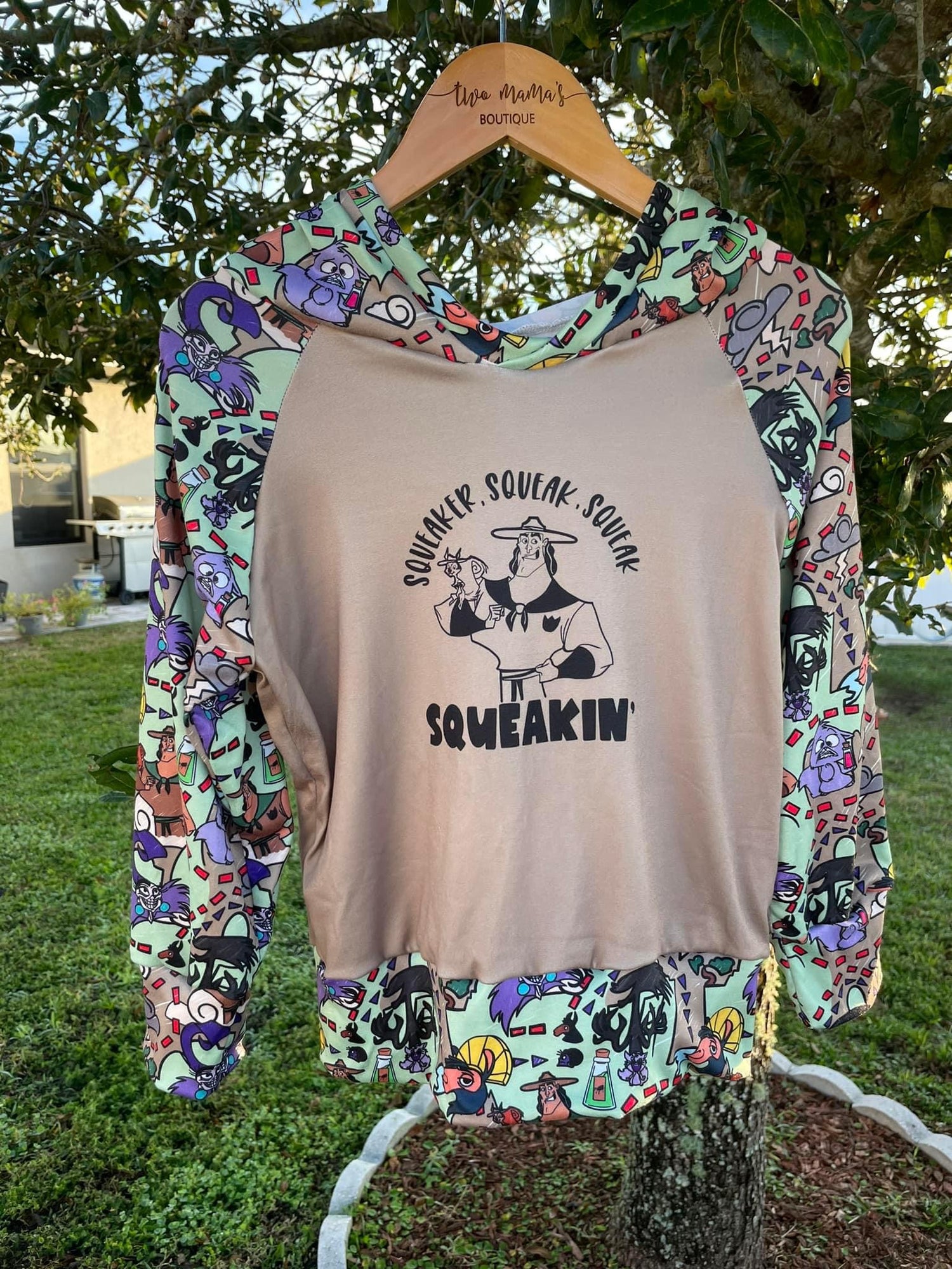 A cuffed arm and banded waist. A pocketless, light weight hoodie. Unisex fit